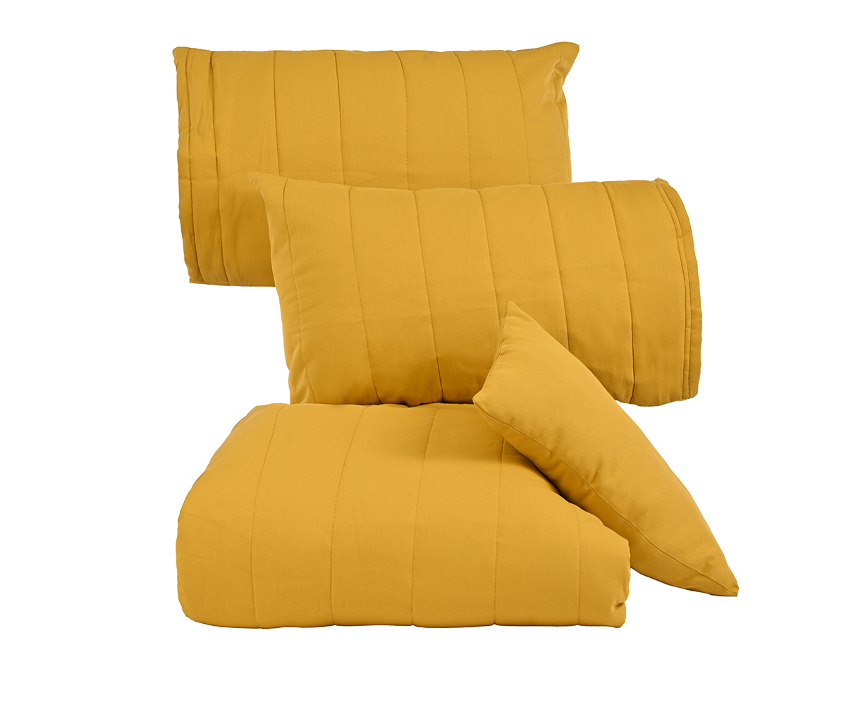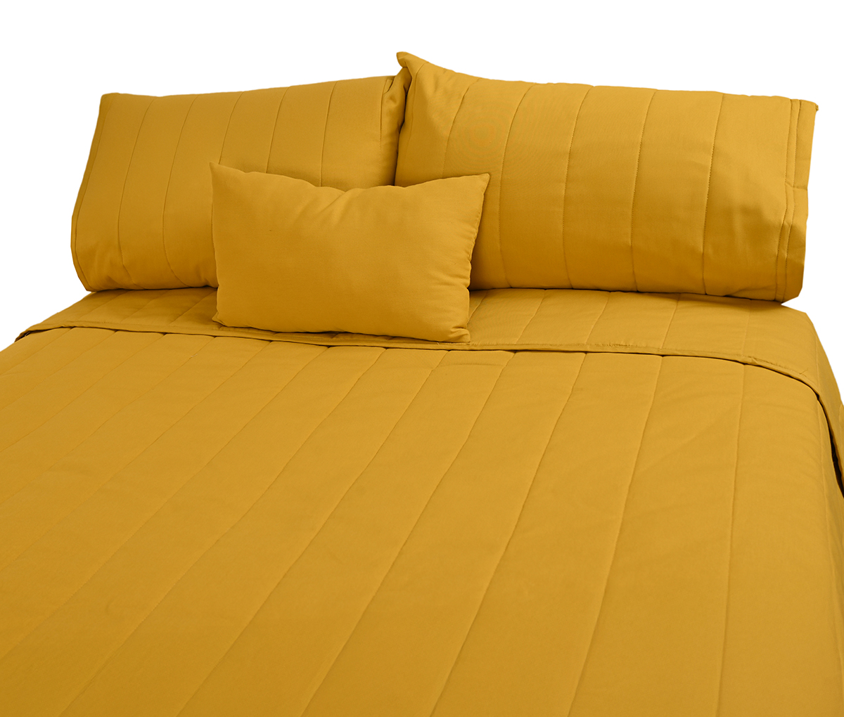 Juego de edredon king size + 2 fundas + Cojín 30 x 50 cm en bolsa textil Juno - Mostaza