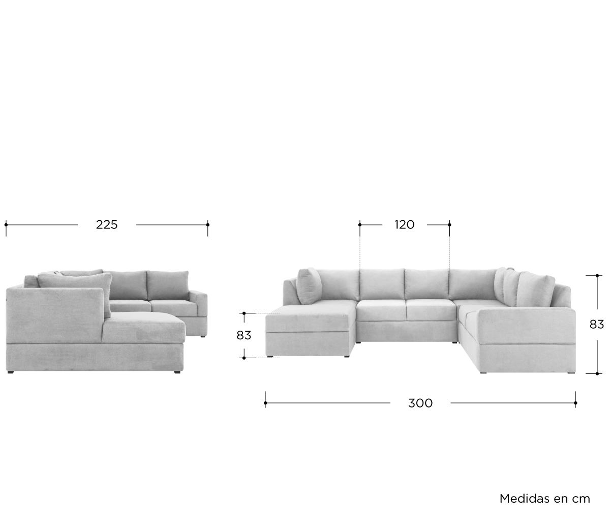 Sala modular izquierda Amil - Gris claro
