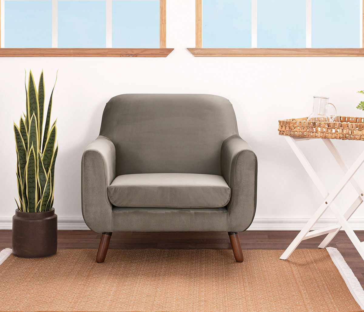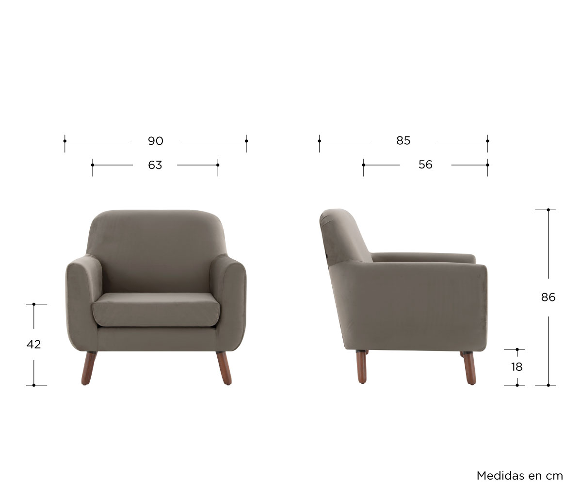 Sillón Jitotol terciopelo pata Nogal - Taupe