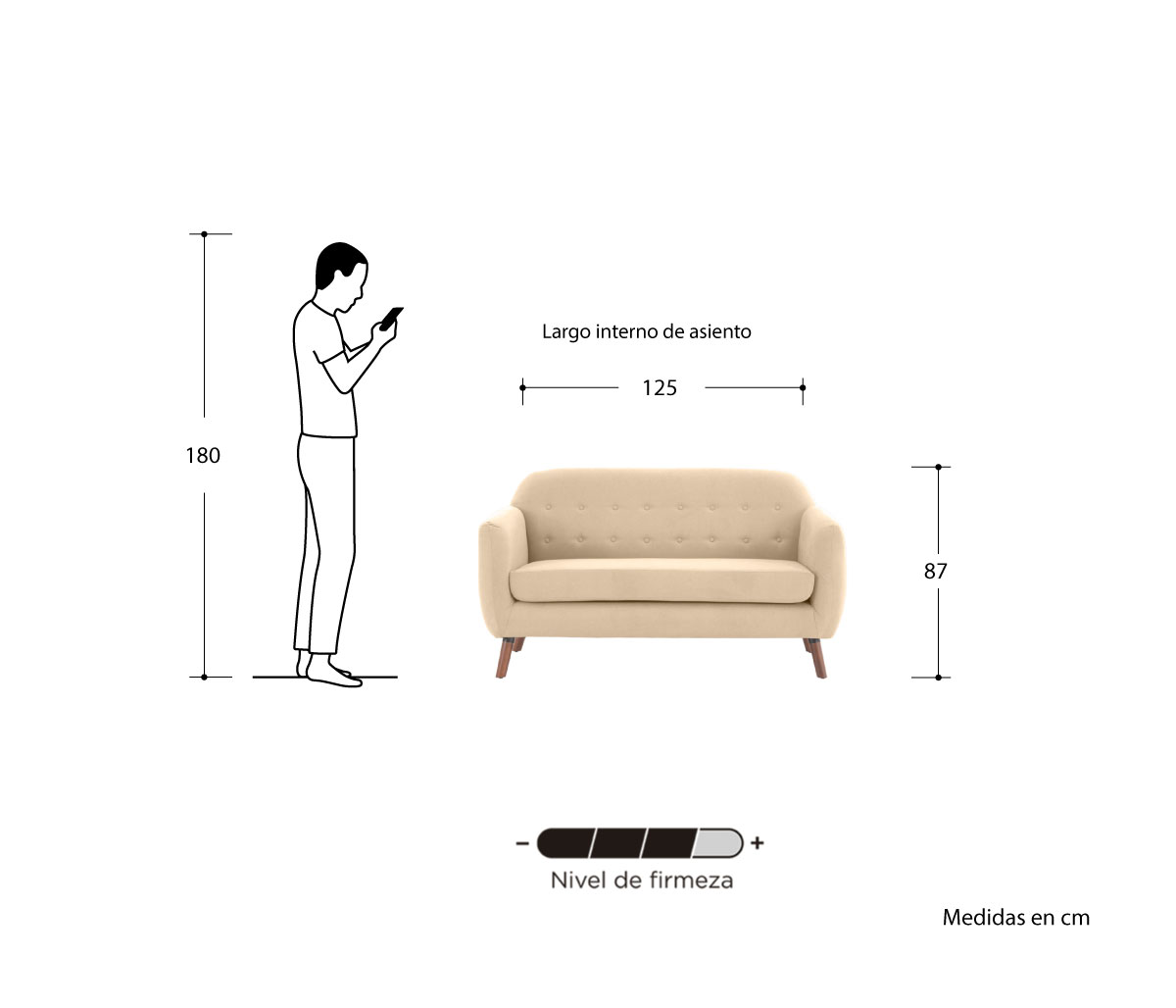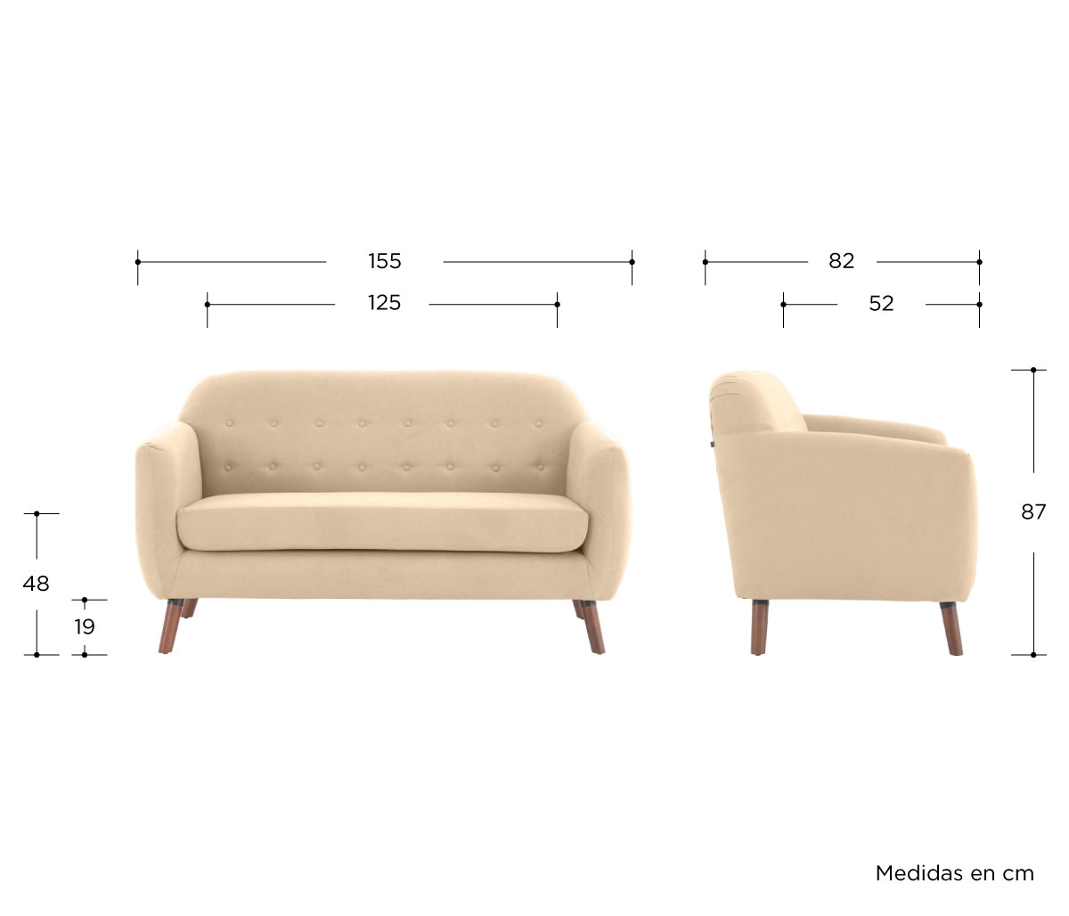 Sofá 2 cuerpos San Blas pata nogal - Beige